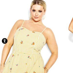 City Chic Woman's Plus-Size Eleanor Gingham Floral Retro Swing Dress Sz XL/22