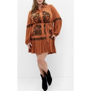 City Chic Womens Plus 16 1X Embroidered Boho Mini Dress Brown Black NWT Hippie