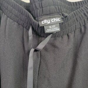City Chic Women's Pull On Elastic Waist Crepe Textured Black Pants Size 22 (XL)