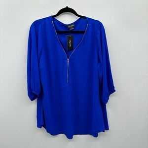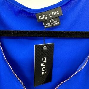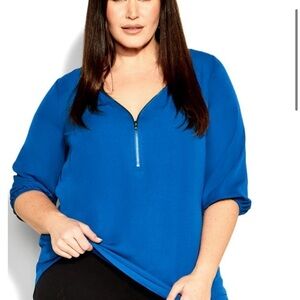 City Chic blue zip chest long sleeve polyester womans top. NWT S/16