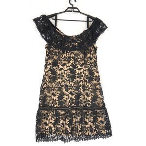 City Chic Womens size XS 14 dress black tan Dreams of Lace Fit & Flare C0181