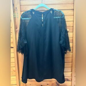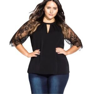 Beautiful top with lace sleeves, flowy, can be worn with jeans or black pants for dressier events. Size L in City Chic = 20 US or approx 2X.