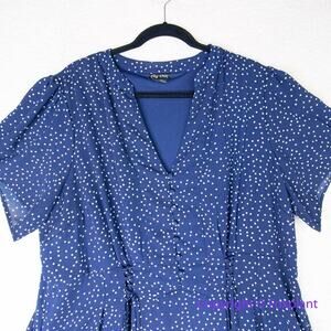 City Chic navy blue white polka dot short sleeve dress V neck, size 20