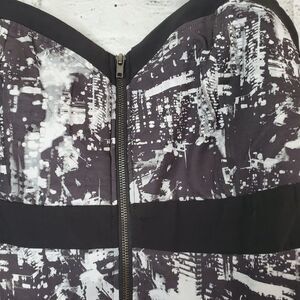 City Chic Black and white city lights zip up corset peplum size small = size 16