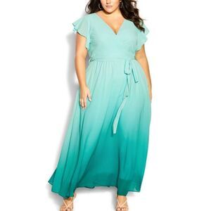 City Chic Isabella Ombre Maxi Dress in Marine Size 16