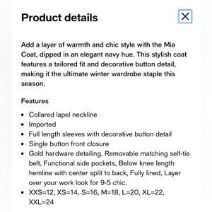 City Chic Women’s Navy Blue Mia Coat 16 NWT