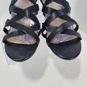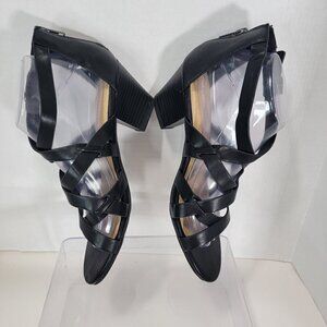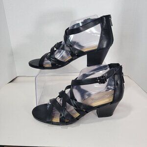 City Classified Womens 9 Black Strappy Mid Heel Summer Sandal Basic Classic