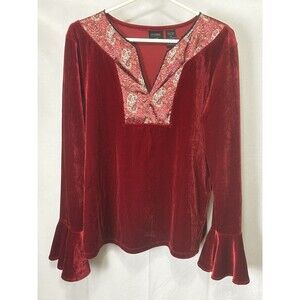 City Elements by Lee Womens M Red Velvet Long Bell Sleeve Top