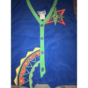 City Girl By Nancy Bolen Womens 80s Abstract Vest Embroidered Star Bling Buttons