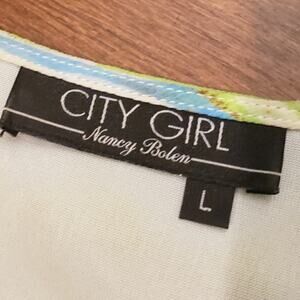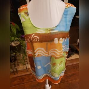 City Girl Nancy Bolen L multi color patch work look camisole and cover shirt