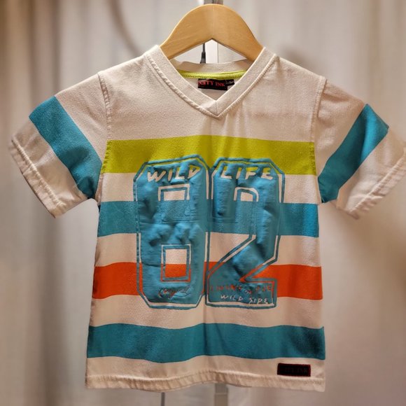 City Ink Boys Shirt Wild Life 82 White Blue and Orange Size 7