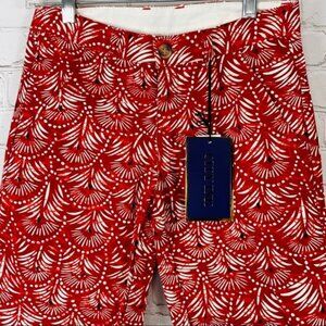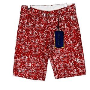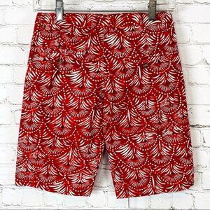 City Ink Shorts 8 Girl Abstract Palm Print Brick Red Cotton Preppy Beachy Longer