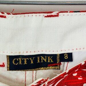 New with tags City Ink girls shorts in brick red with palm leaf print. Zipper fly, pockets, longer length. Size 8.