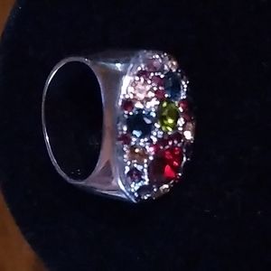 Size 8 Costume Jewelry ring by City Rox with CZ stones. in red, green, yellow & amber.