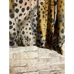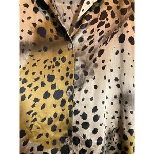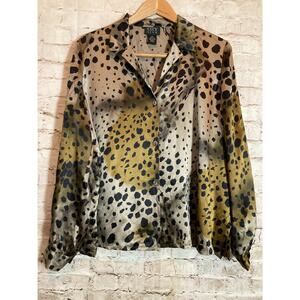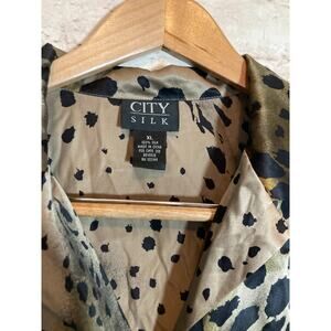 City Silk Top Womens XL Brown Cheetah Leopard Button Up Lightweight Boxy