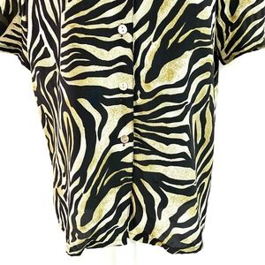 Vintage Tiger Print Short Sleeve Button Up Silk Shirt by City Silk