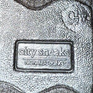 These City Sneaks brand Slip On Black Shoes are classic, useful and timeless. A Size 9.5 featuring "non-marking" velveteen bottoms. No laces, just slip on! Perfect condition!