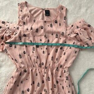City Streets Cold Ruffle Shoulder Light Pink Birdcage Printed Dress