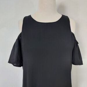 City Streets Dress Flowy Cold Shoulder Womens Size 8 Lined Keyhole Solid Black