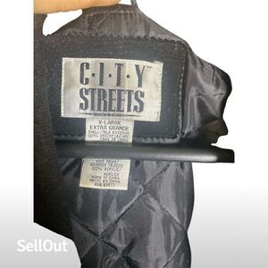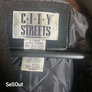 The City Streets overcoat is a men's XL, regular fit, long coat made from genuine leather with a black color. It features a zip closure, ribbed cuffs and hem, and a quilted acrylic lining, making it suitable for casual occasions during the fall season. This pre-owned coat is ideal for everyday wear or casual outings. Keywords: City Streets, men's coat, XL, overcoat, genuine leather, black, casual, fall, ribbed cuffs, quilted lining, zip closure, pre-owned, long coat, regular fit, acrylic lining.