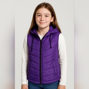 Stay warm and trendy with this stylish purple hooded puffer vest! Perfect for layering, this vest features a zip front and an adjustable hood. Ideal for outdoor activities or casual outings, it offers both comfort and versatility. The quilted design not only provides insulation but also adds a chic touch to any outfit. Whether worn over a long-sleeve shirt or paired with your favorite sweater, this vest is a must-have for your wardrobe.