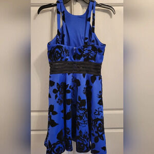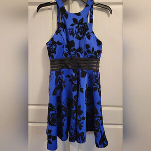 City Studio A-Line Floral Velvet Stripe Waist Dress