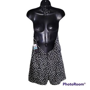 City Studio Black Backless Polka Dot High Neck Romper Shorts Cinch Waist Size 9