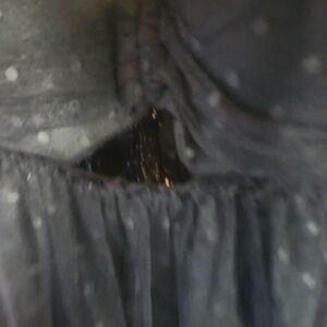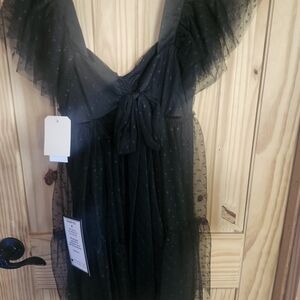 Chic mini dress with sheer polka dot ruffles. Perfect for parties.