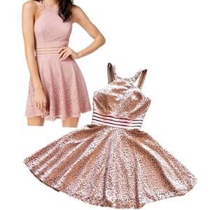City Studio DRESS Womens 1 Blush Pink Lace Zip Halter Mini Fit &Flare Peek A Boo Waist - New Condition