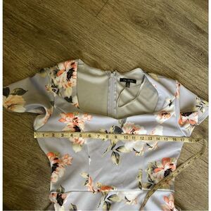 This dress is so beautiful! The color and the fit is so lovely. Small cap sleeves and zip up the back. The tag say gray coral but I think it more of a lilac or periwinkle gray.