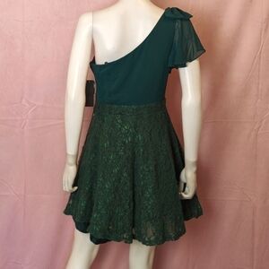 City Studio Emerald Green One Shoulder Fit and Flare Mini Lace Formal Dress 7