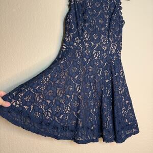 City Studio Fit & Flare Mini Dress Juniors 5 Blue Lace Sleeveless Back Zip Lined Coquette Party Event Holiday Date Night Flowy