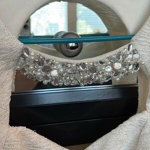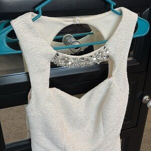 City Studio Jeweled Cream Sleeveless Dress Gold Sparkles Pearl Closure 3