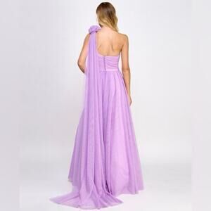 City Studio Rosette One-Shoulder Ruched Bodice Flyaway gown purple - 11/12