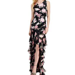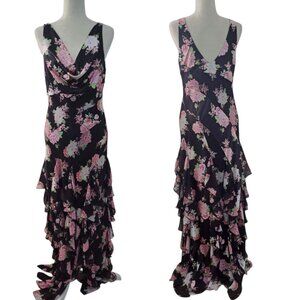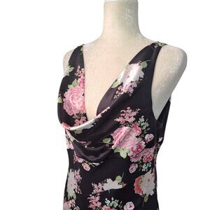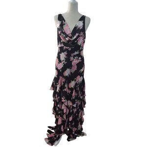 City Studio Ruffled Black Pink Floral Maxi Dress Cowl Neck Party Cocktail Sz XL