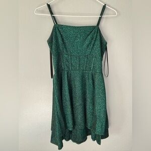 City Studio Semi Floral Dress. Size 3/4 Green Sparkle thin adjustable straps. Fit and flare. Knee length. Worn twice for homecoming dances.