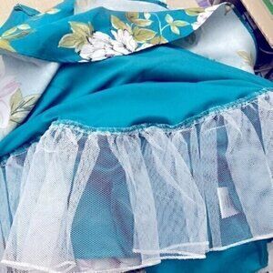 City Studio Skater Skirt Womens Size 4 (Junior 5) Blue Floral Tulle Lined Mini