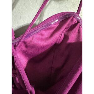 The layered design and vibrant purple hue make this dress a standout. A lace-up back and strappy details add charm, while the soft fabric ensures comfort.