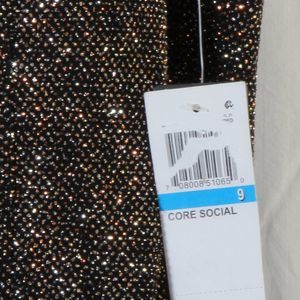 Dazzle and shine in the City Studio Women's Core Social Glitter Sparkle Metallic Mini Dress. This show-stopping piece features an alluring halter neckline and a body-hugging silhouette that's perfect for any special occasion. Crafted from a luxurious blend of 80% Nylon, 15% Metallic, and 5% Spandex, with contrast panels of 93% Polyester and 5% Spandex, this dress offers both comfort and glamour. New with tags; never worn.