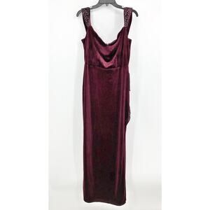 City Studio Womens Off The Shoulder Rhinestone Long Dress 16W Burgundy Slit NWT