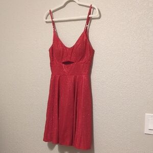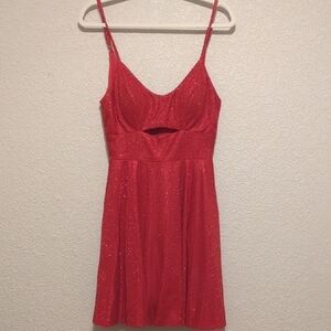City Studio cherry red glitter sleeveless fit and flare peekaboo mini dress
