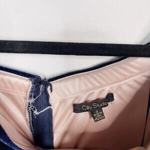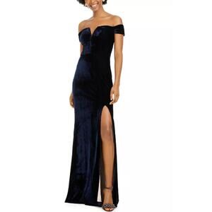 City Studios Juniors Size 5 Blue Velvet Off The Shoulder Gown Dress Split V Neck
