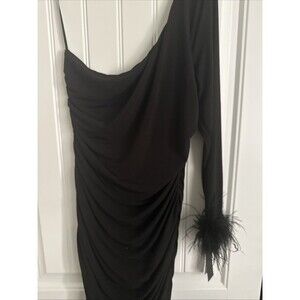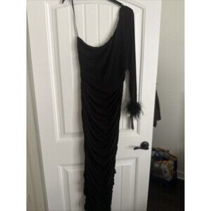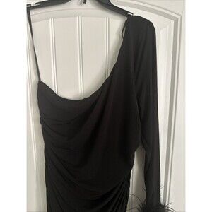 City Studios Women's Plus Size One-Shoulder Feather-Cuff Gown Dress Black 18W