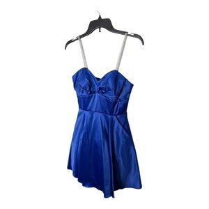 City Studios size 5 Satin Fit & Flare Dress embellished straps Royal blue