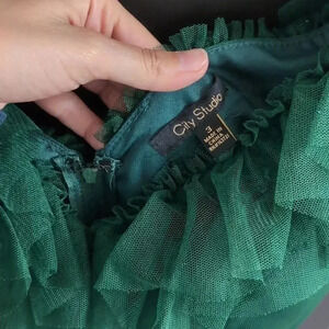 City Studios Sz 3 Tiered Mesh Fit & Flare Dress Green