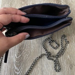 Comes with a detachable chain strap that’s a little damaged/discolored (reflected in price, pictured). I used it as a wallet without the chain, due to the smaller size.