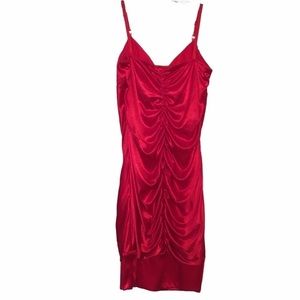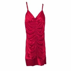 City TRIANGLES - Red Ruched Spaghetti Strap Mini Dress - Juniors Size Large