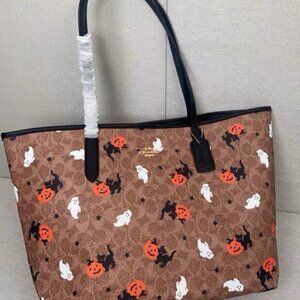 NWT ❤️ Coach City Tote In Signature Canvas With Halloween Print