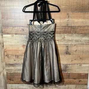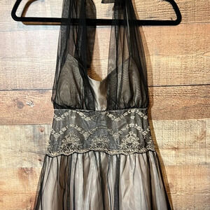 🌻 City Triangle Sheer Black/Nude Y2K Vintage Dress sz. 7 Prom Evening Tulle