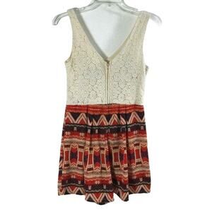 Shorts romper is in great pre-owned condition...jr. size 5...v neck lace top portion with geo print bottom portion...no stains or holes...one piece